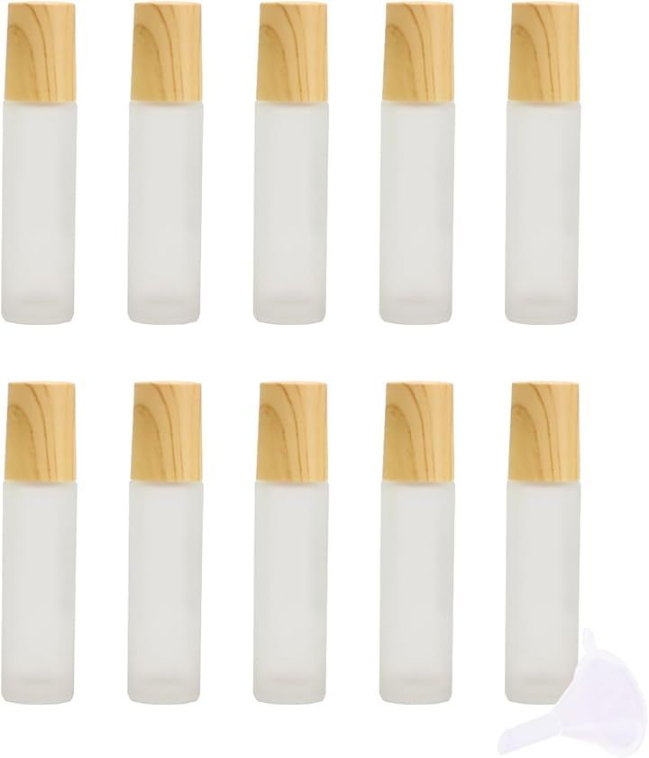 Roll-on bottle, light-blocking bottle, atomizer, aroma container, essential oil, wood grain cap + funnel included.