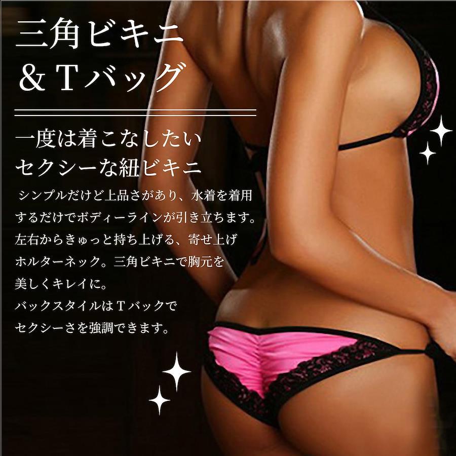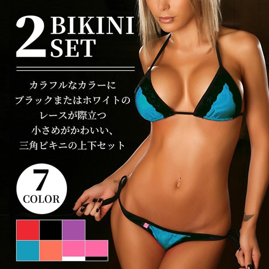 ネックスタイル ホルターネック【カラー】レッド(赤×黒)、パープル(紫×白)、ブラック(黒×白)、ブルー(青×黒)、オレンジ(橙×黒)、ピンク(桃×黒)、ピンク(桃×白)【素材】 ポリエステル90%、スパンデックス10% 【重さ】80g 【対象】レディース(女性) 【サイズ】フリー【セクシー三角ビキニ2点セット】 小さめがかわいい、カラフルなカラーにブラックまたはホワイトのレースが際立つ三角ビキニの上下セット 【取り外し可能なカップ付き】 トップスにはカップがついているのでバストラインもきれいにメイク。 カップポケットありで、カップ取り外しできるので、お好きなボリュームのパッドで小胸でも盛れるので体型カバーもバッチリ。【セクシーなTバッグ】 一度は着こなしたい、セクシーな紐ビキニ。 シンプルだけど上品さがあり、水着を着用するだけでボディーラインが引き立ちます。 左右からきゅっと持ち上げる、寄せ上げホルターネック。三角ビキニで胸元を美しくキレイに。 【ぴったり紐アンダーとサイドリボン】 肩首と背中で結ぶホルタータイプ、腰下サイドリボンタイプで女性らしさUP アンダー、ショーツは紐で自分のサイズに調整できるので安定感抜群、体にしっかりフィットします。【王道スタイル】 無地でシンプルなデザインの極小三角ビキニは、流行に関係なく使える1枚 シンプルなデザインが大人っぽい。 他のアイテムとも合わせやすいので、重ね着やコーデも楽しめるプチプラアイテム。 伸縮性、速乾性に優れた素材でプールやビーチに最適。Tシャツの下にブラの代わりに、ショーツ代わりに紐パンを ちょっとエッチな下着感覚で楽しんでも。 【撮影にも】 海だけでなく撮影会にもおすすめコスチューム。 ハロウィンやクリスマスのコスプレ、アニメイベント仮装、女装にもおすすめの衣装です。(#lf)(#lf)(#lf)商品購入前に、ストア紹介ページをご確認ください。