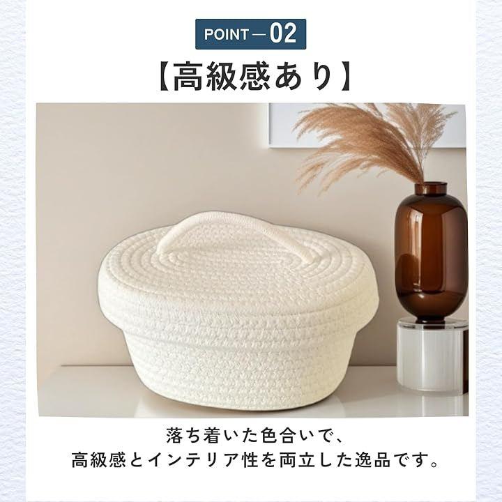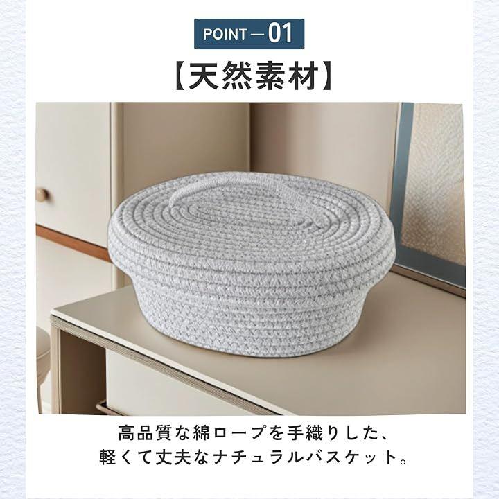 「天然素材」高品質な綿ロープを手織りした、軽くて丈夫なナチュラルバスケット。