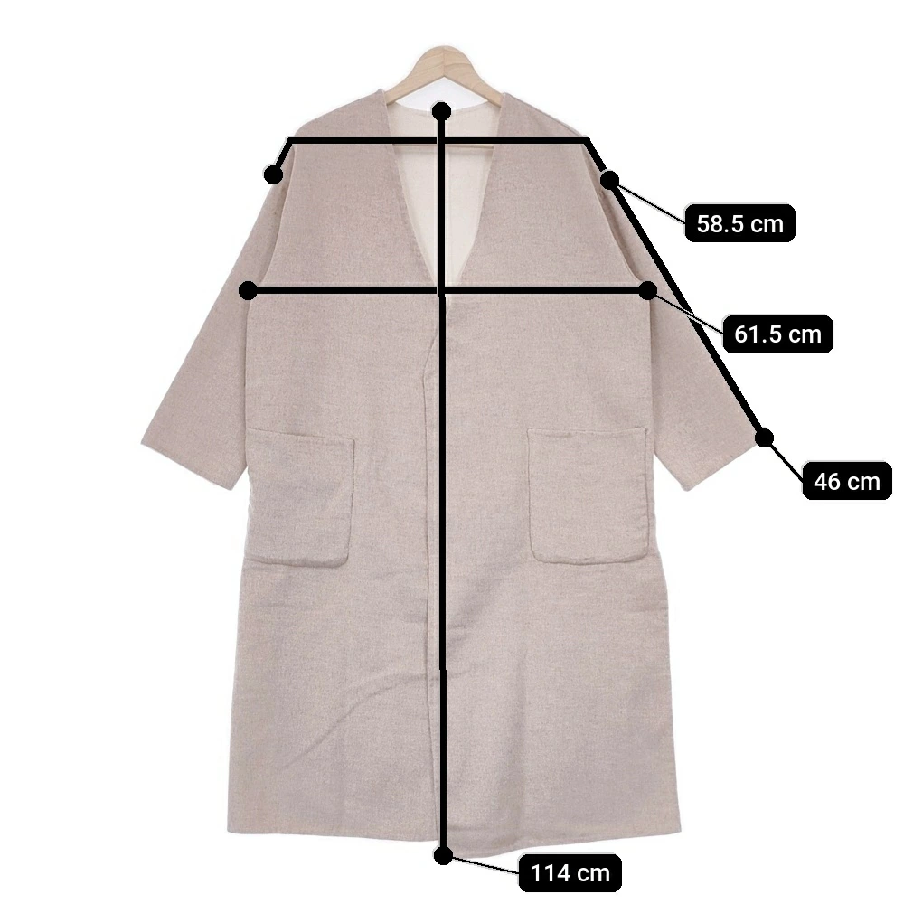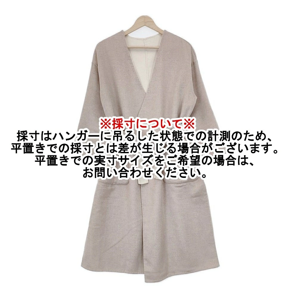 | 実寸サイズ | 肩幅:約58.5cm 着丈:約114cm 身幅:約61.5cm 袖丈:約46cm 備考 内ポケット2 フロントボタン・ベルトループなし ※採寸画像がある商品はハンガーに吊るした状態での計測のため、平置きでの採寸とは差が生じる場合がございます。平置きでの実寸サイズをご希望の場合は、ご購入前に必ずご質問ください。 ※記載以外のサイズが合わないことを理由とした返品はできませんので、 記載部分以外で実寸サイズの気になる箇所があれば必ず購入前にご質問ください。 |
