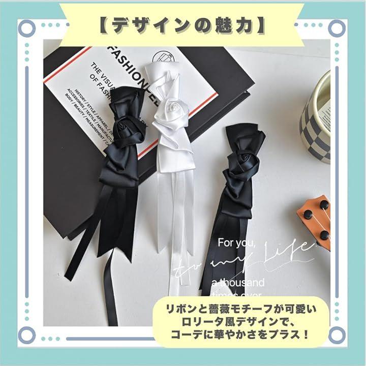 「デザインの魅力」リボンと薔薇モチーフが可愛いロリータ風デザインで、コーデに華やかさをプラス。