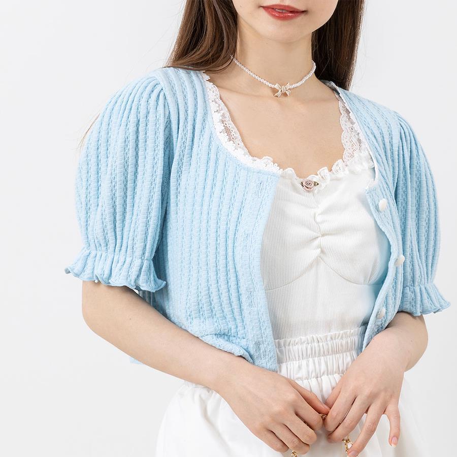 【素材】サラッとした肌触りのいいリブカットソー素材です。オールシーズン着用いただけます。肩や胸元のレースも柔らかい素材感なので、チクチクしにくいのがポイントです。ホワイトは濃色下着だとほんのり透ける可能性がある為、淡色下着の着用をおすすめします。