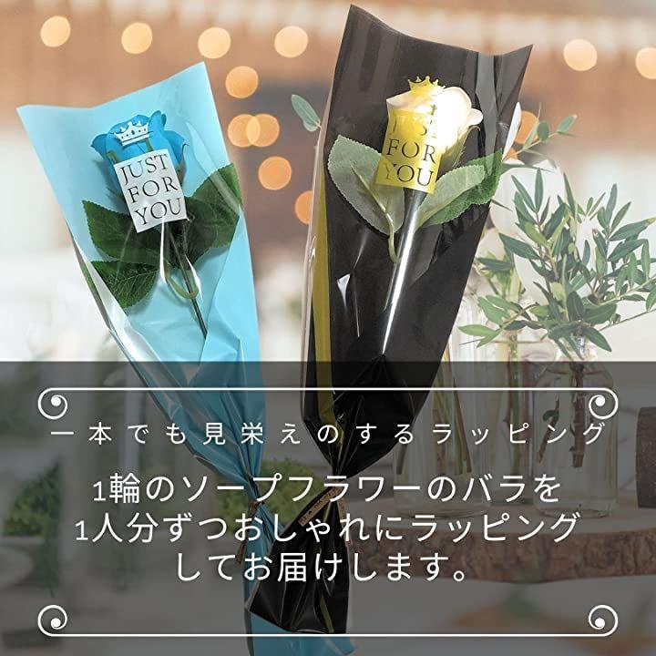 ・1輪のソープフラワーのバラを、1人分ずつおしゃれなパッケージで3worldのオリジナルラッピング済み。