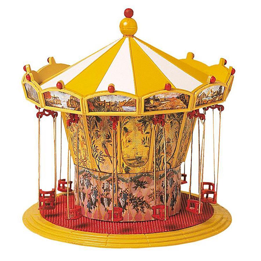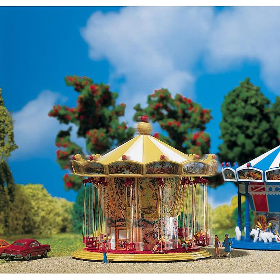 たくさんのブランコが回転するアトラクションです。モーターは付属しておりますので、回転させるには直流/交流12〜16Vの電源をご用意ください。完成時およそ 直径 68 mm 高さ 68 mm