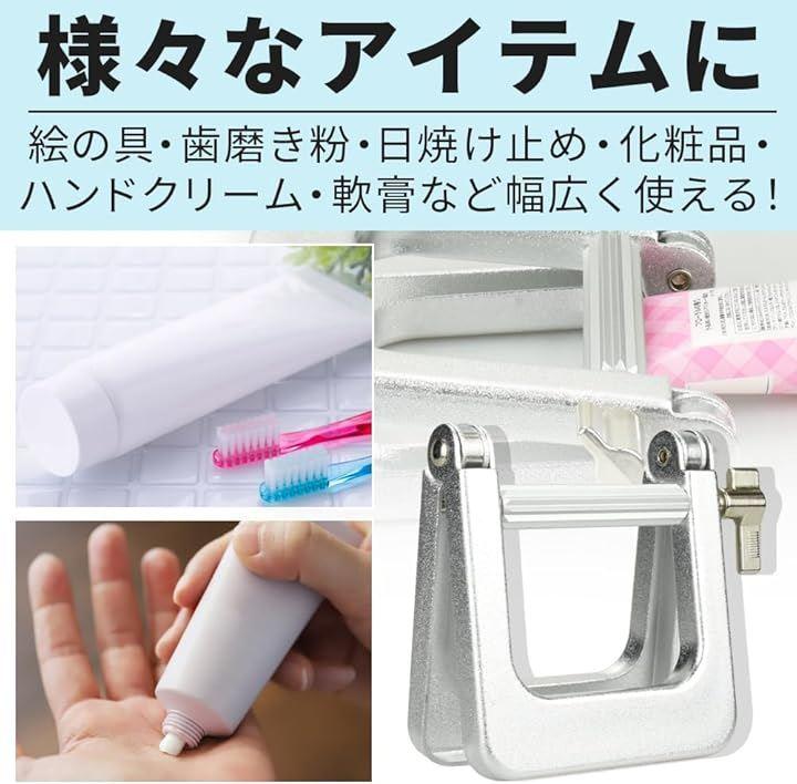 汎用性の高いチューブ絞り器は絵の具や調味料はもちろん、歯磨き粉・日焼け止め・化粧品・ハンドクリーム・軟膏といったアイテムにもご使用いただけます。