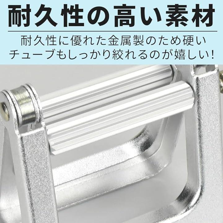 プラスチック製ではチューブの素材によっては対応できないものもありますが、硬いチューブもしっかり絞れるよう耐久性に優れた金属製でご用意致しました。