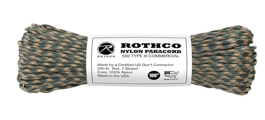 【パラコードとは】 一言で表すなら「汎用性の高いロープ」です。 約4mmの細さながら、耐荷重は250Kgと頑丈でその上しなやか。 元々は、米軍のパラシュート降下部隊のパラシュートと人間を繋ぐ細引きロープでしたが、その利便性から汎用ロープとして広く普及しました。 テントやタープを固定したり、洗濯紐代わりに衣類を掛けたり、物を縛ったり結わいたり等アウトドア・サバイバルシーンはもちろんですが、 カラーバリエーションも豊富ですので、好みの色を組み合わせてアクセサリーにしたり、足元のアクセントで靴ひもにしたりと普段使いでも活躍してくれます。 ハサミやカッターナイフ等の刃物をあてれば、簡単にカットできます。 芯は7本のナイロンより糸で構成されており、釣り糸や衣服の応急修繕、テントやタープの修理等緊急に細い糸を必要とした時にも対応できます。 切り口はライター等で軽くあぶると、容易に末端処理ができ、ほつれません。 【ロスコ社のパラコード】 ご紹介しておりますパラコードは強度・品質・耐久性において高い水準にありアメリカ政府公認の高品質なロープです。 その品質の高さから、日本国内においても広く普及しています。