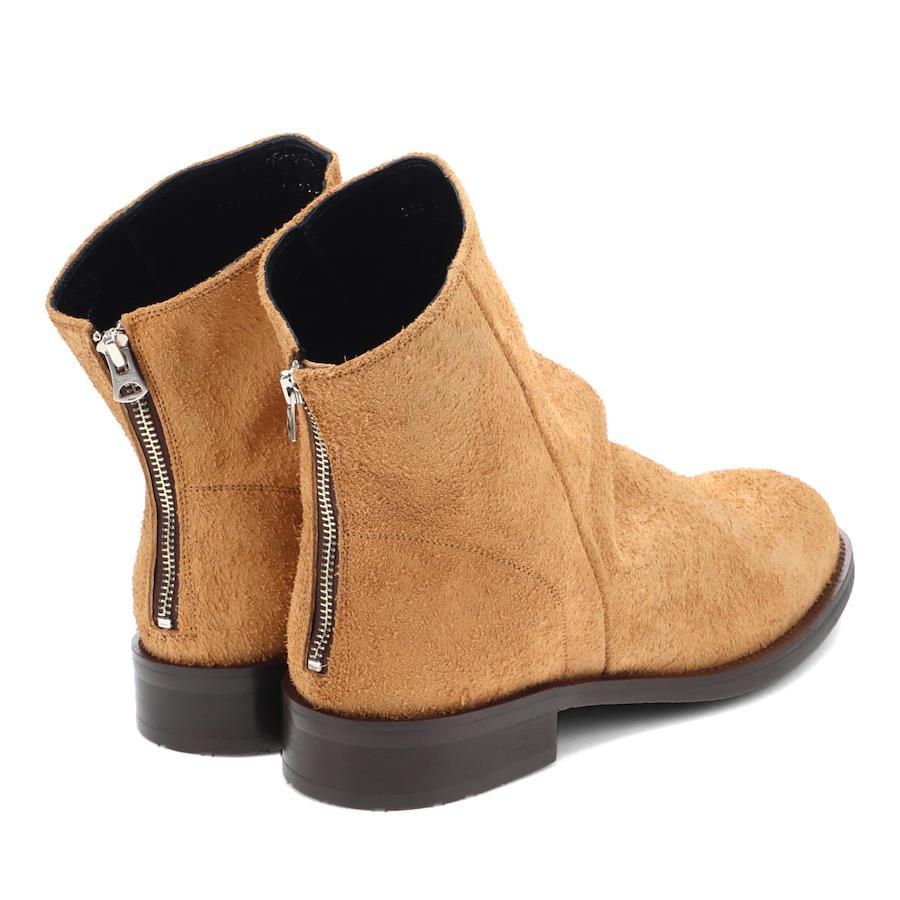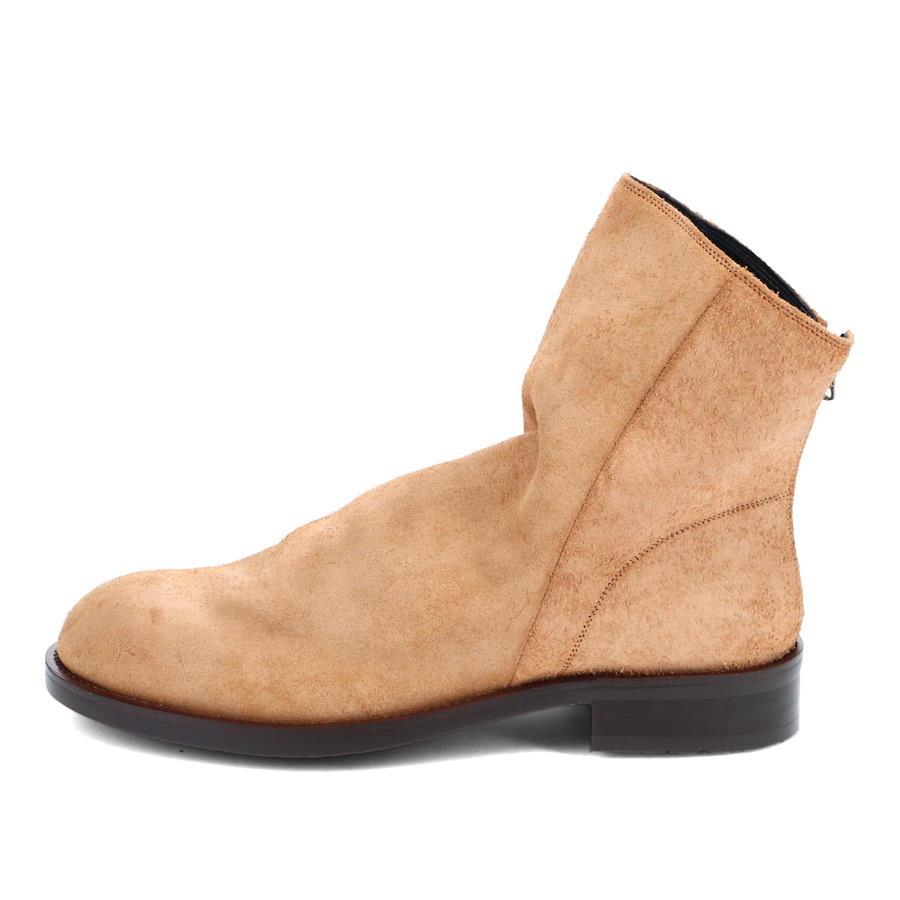 | ラフアウトレザー・バックジップブーツ 【素材】 牛の床面を使用したラフな質感。スエードよりも毛足が粗く表情豊かな素材。 ※本革を使用している為、多少のムラや小傷などがございます。 【デザイン】 筒周りを斜めに長く取ったシルエットは履くと甲にシワが入りモードクラシックやトラッドにも履きこなせるロングブーツ。 ファッション性に特化したどこか懐かしのデザインブーツです。 クラフト感の強い仕上がりでトレンドにも負けない当ブランドの印象を与える1足です。 【サイズ】 ※普段通常の革靴で25.5cm、スニーカーで26.5-27cmを着用するスタッフで<41/25.5cm>でジャストサイズでした。 ややタイトフィットなので、ゆったり履きたい方はハーフサイズアップをお勧めいたします。 ※サイズ感は、個人差がございますのであくまで参考程度にお考えください。 ■ブランド...whoop'-de-doo' costume no age ■カラー...BEIGE SUEDE,BLACK SUEDE ■アッパー素材....牛革 ■底材.....合成ラバー ■ヒール...約3.5cm ■日本製 *上記は全て25.5cmで計測した数値です。 *多少の誤差が生じる場合がございますので予めご了承下さい。 whoop de doo co.,ltd whoop'-de-doo' フープディドゥ |