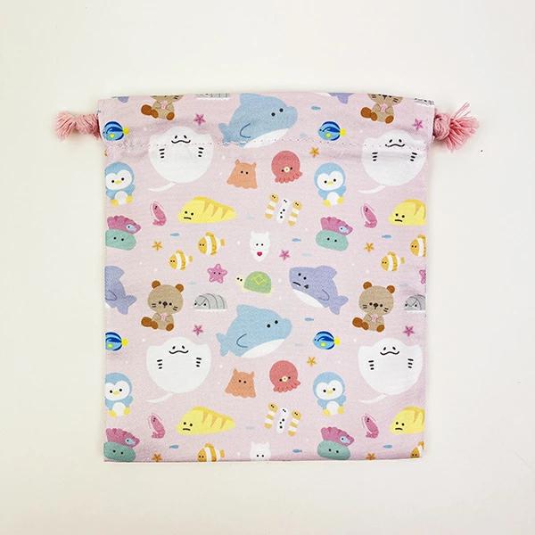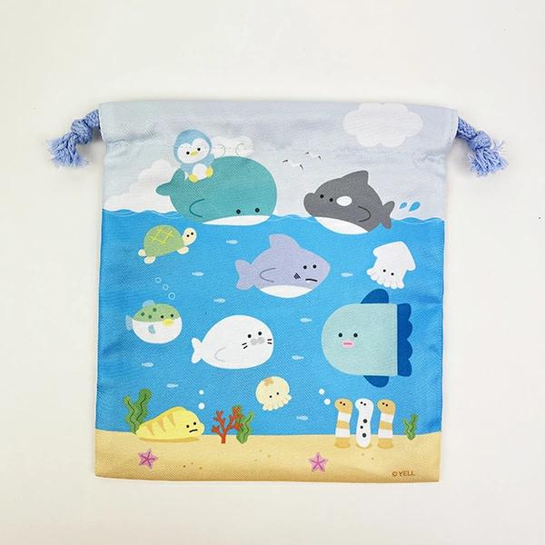 可愛いつぶらな瞳の水族館の巾着セットです♪大、中、小の3サイズなので用途によって使い分けられます♪【本体サイズ:(小サイズ)約145×130?、(中サイズ)約185×160?、(大サイズ)約220×192?】