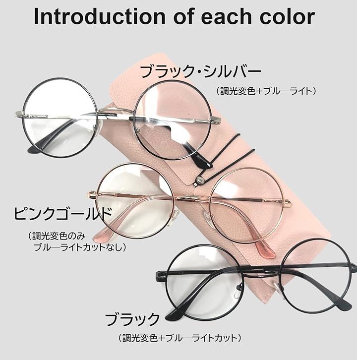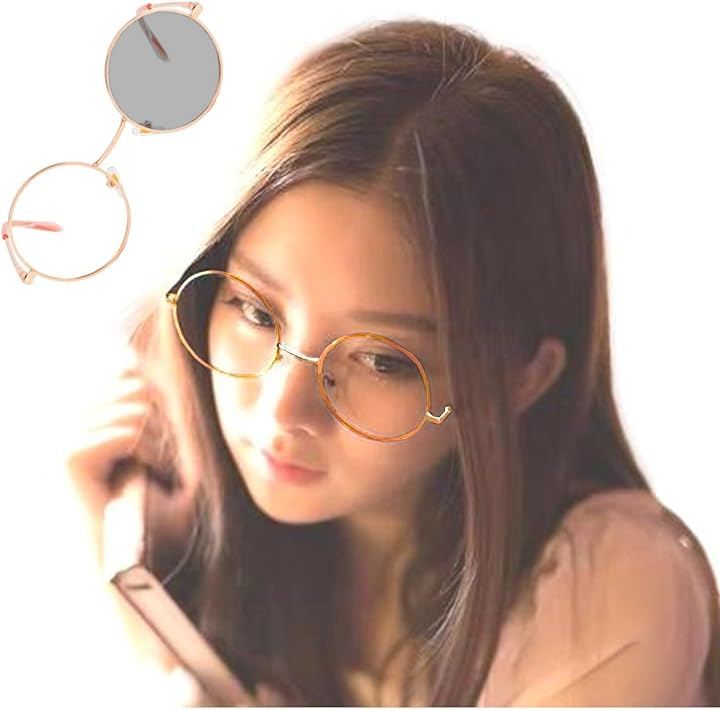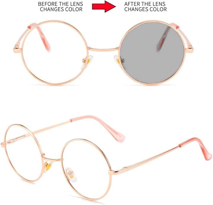 Round Glasses with Blue Light Blocking and Photochromic Lenses - Fashionable Eyewear for Desk Work, Going Out, and PC Use