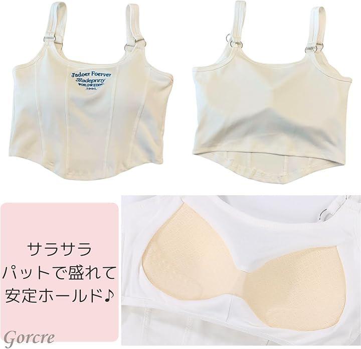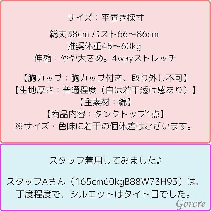 「詳細」「胸カップ:胸カップ付き、取り外し不可」「生地厚さ:普通程度(白は若干透け感あり)」「主素材:綿100%」「商品内容:タンクトップ1点(胸パット付き)」
