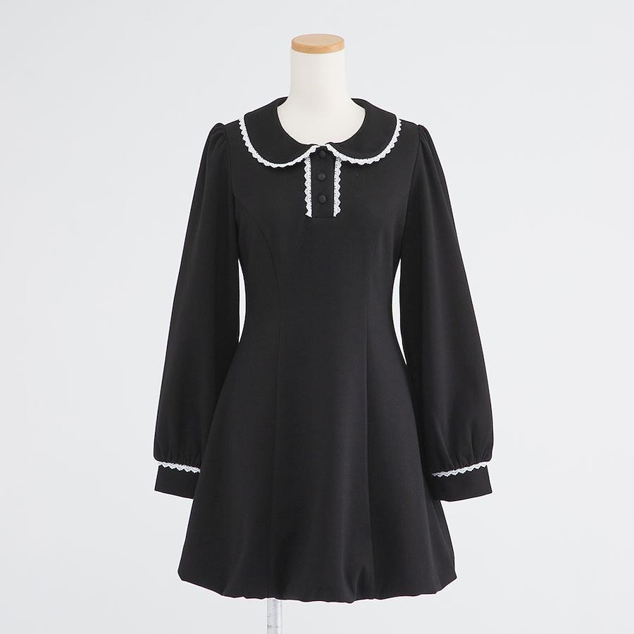 丸襟や前立て、袖口切替等、スカラップレースがアクセントに♪