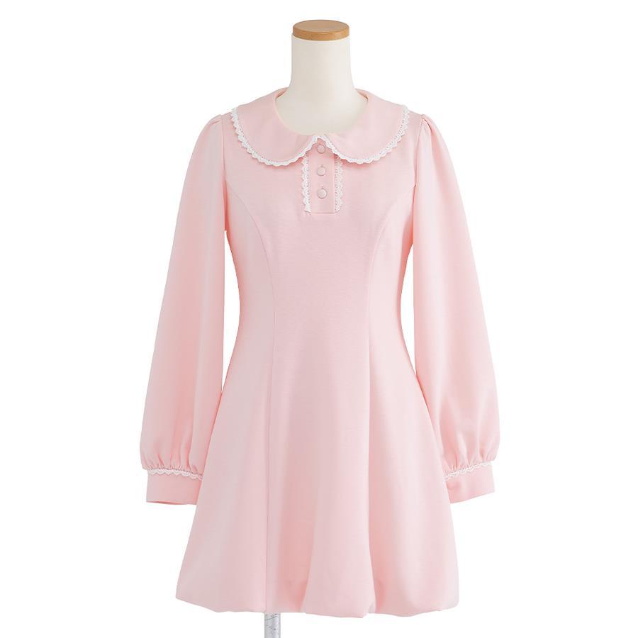丸襟や前立て、袖口切替等、スカラップレースがアクセントに♪