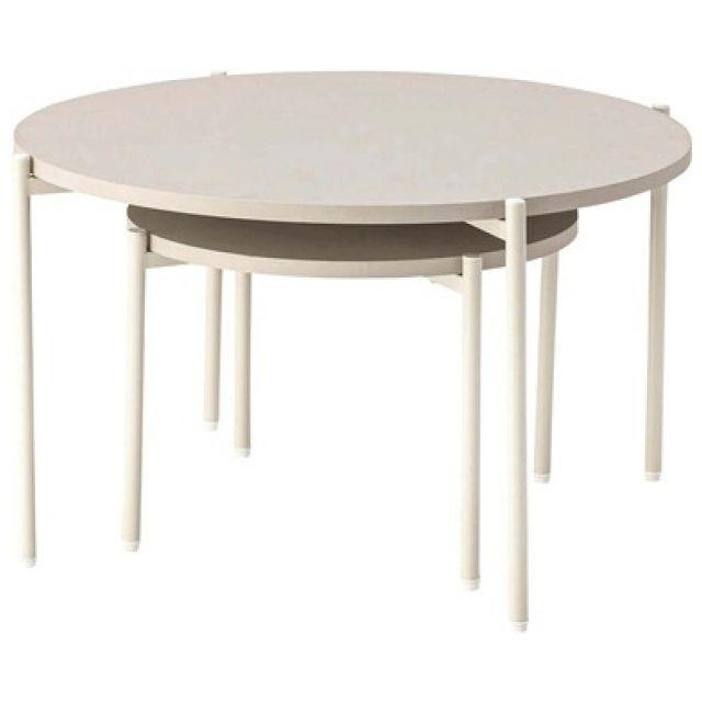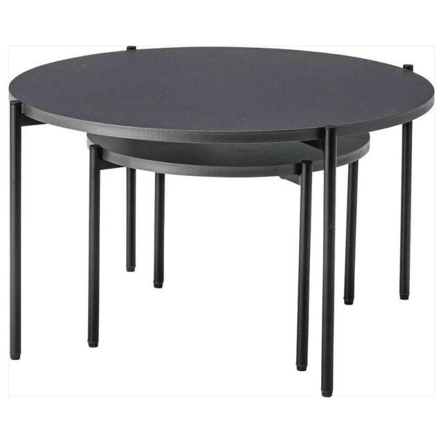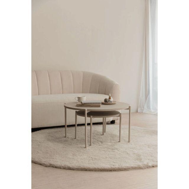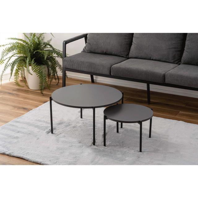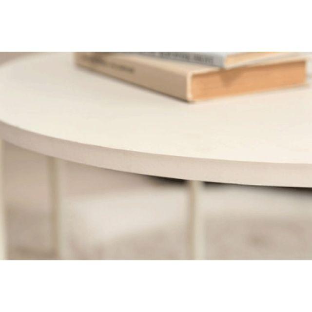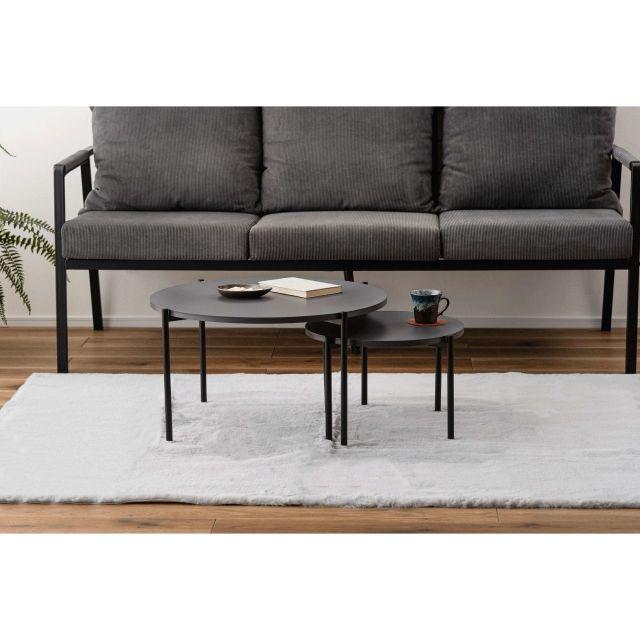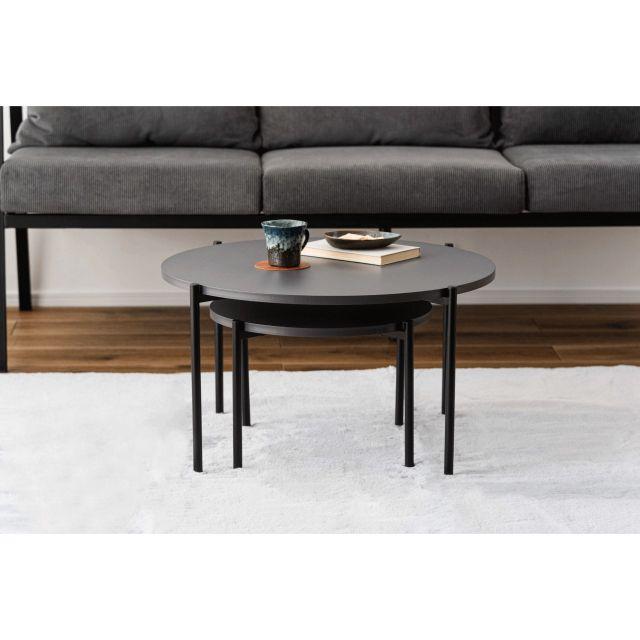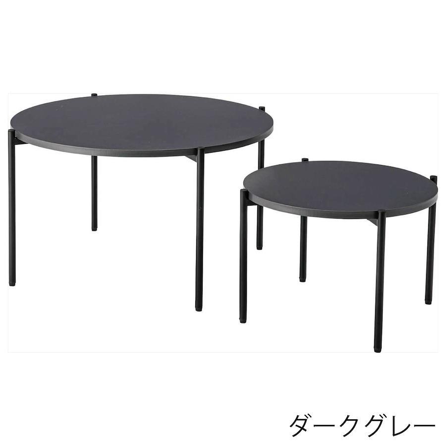 【空間になじむ、静かなデザイン】マットな質感の天板と、すっきりとしたフレームを組み合わせたラウンドテーブルシリーズ。主張を控えた佇まいなので、様々な空間になじみやすいデザインです。使用しない際には重ねて収納することでコンパクトに収まります。床置きやソファ横など、限られたスペースにも取り入れやすいサイズ感です。〈製品規格〉商品サイズ:S:W40×D40×H28cmL:W60×D60×H35cm重量:5.6kg静的耐荷重:10kg/台材質:合成樹脂化粧繊維板スチール(粉体塗装)機能:アジャスター付組立:要組立品生産国:中国