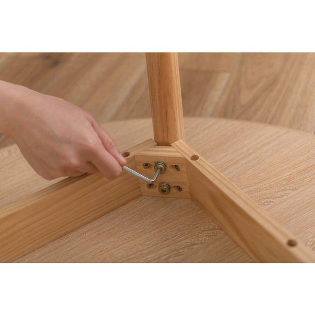 W90×D90×H72cm【商品重量】10.5kg【静的耐荷重】30kg【材質】合成樹脂化粧繊維板天然木(パイン)ラッカー塗装【原産地】中国【組立】組立式