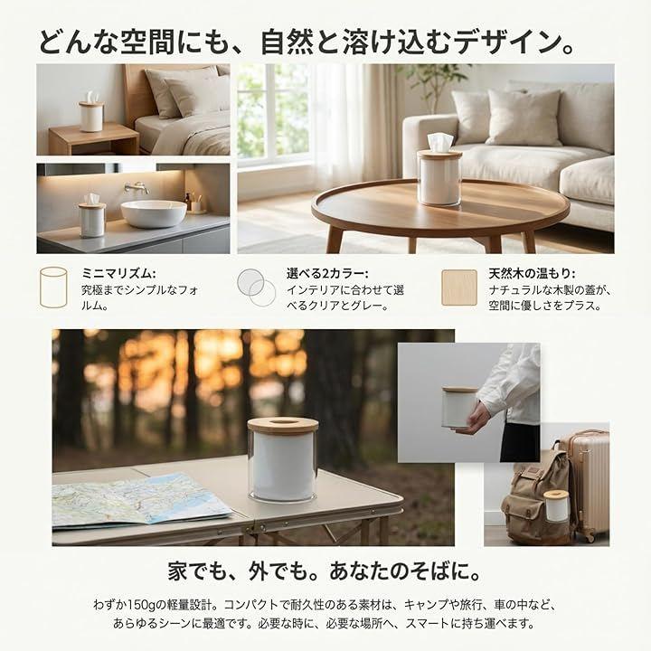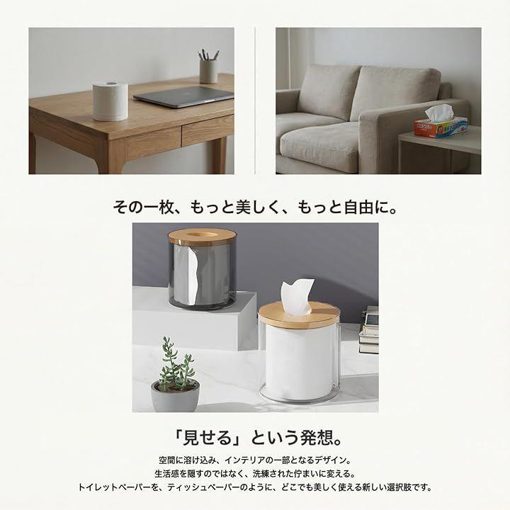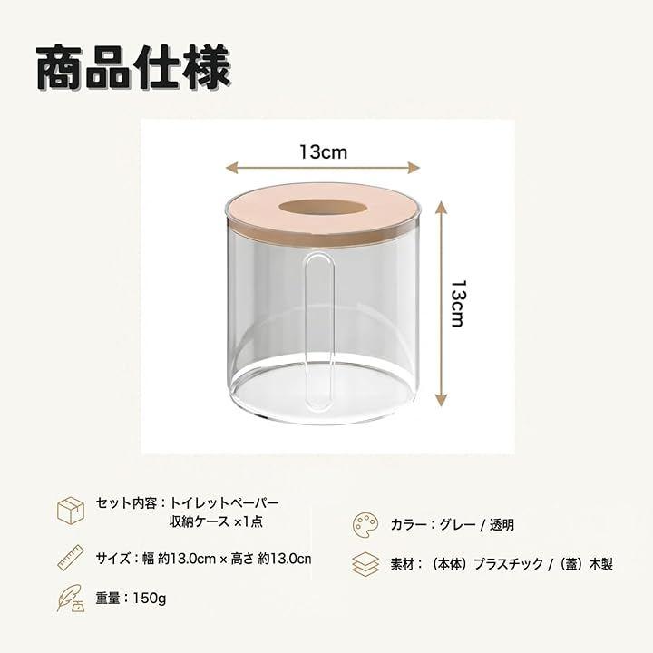 「おしゃれなデザインで空間を演出」このトイレットペーパーケースは、透明とグレーの2色から選べるシンプルで洗練されたデザインです。