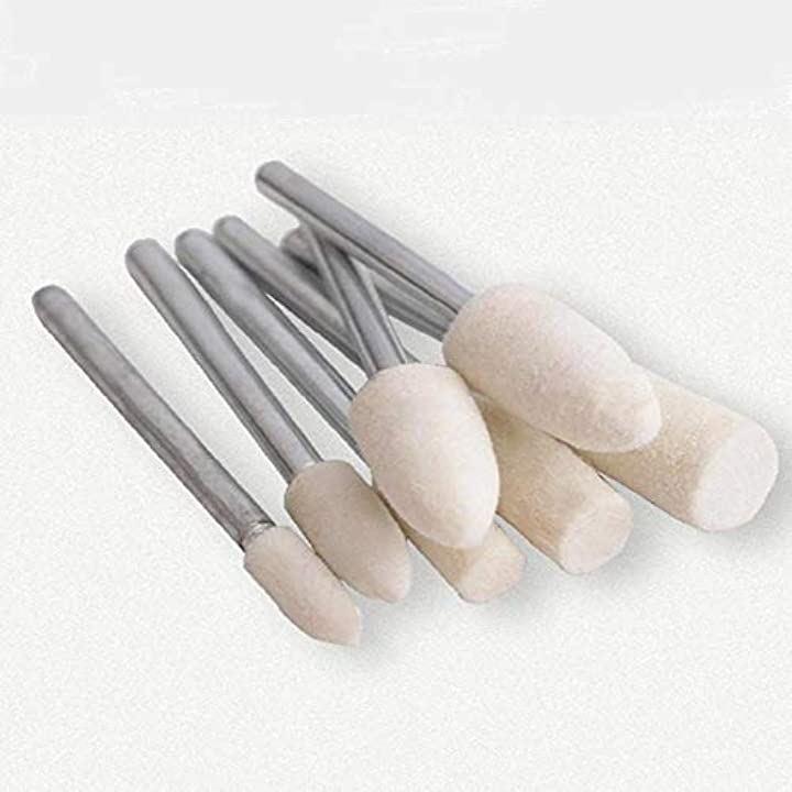 金属などの加工に用いられるリューターに取り付けて使用するフェルトバフになります。