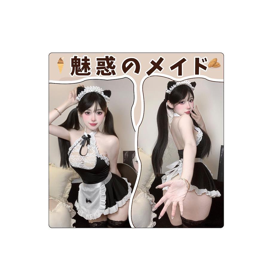 [RPFLQ] Sexy Maid Outfit, See-Through Transparent Lace, Open-Breasted, Black, Sexy, Erotic, Extreme Babydoll Lingerie Dress