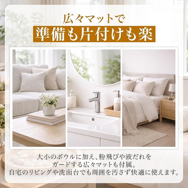 サロンはもちろん、自宅のリビングや洗面台でも周囲を汚さず快適に使えます。