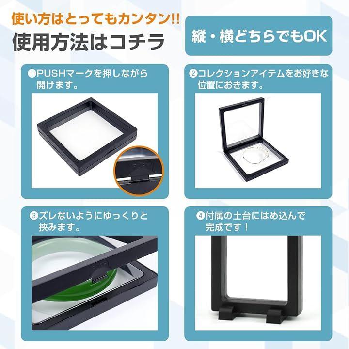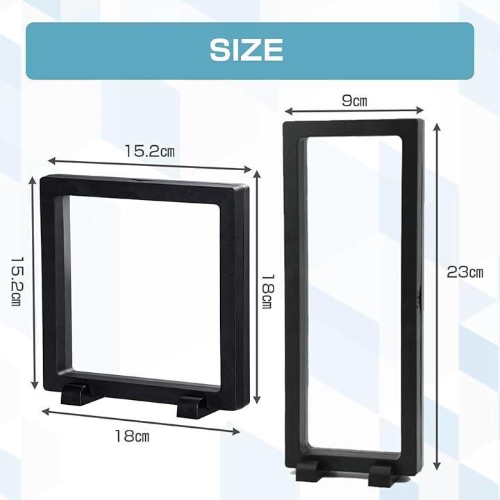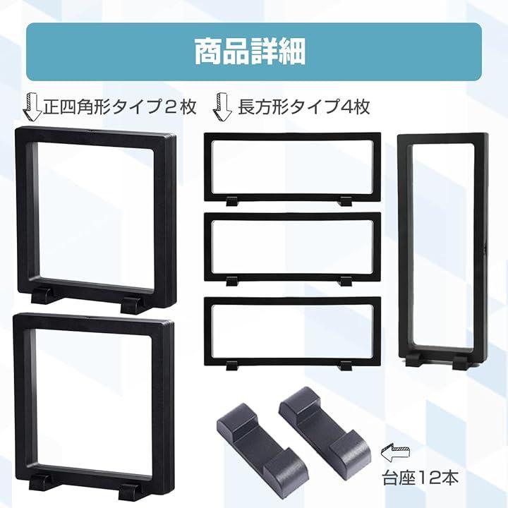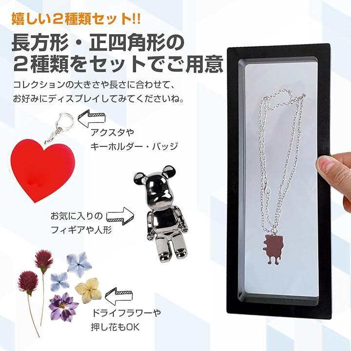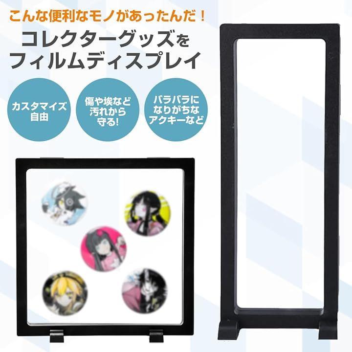 グッズが映えるブラックフレーム、小物を挟んで浮かせるので空中ディスプレイも可能。