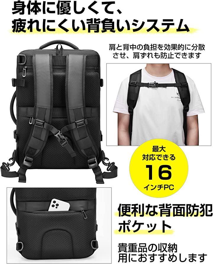 大容量ビジネスリュック15.6インチノートパソコン、A4サイズの書類や3~5日分の衣類などたっぷりと入る可能。
