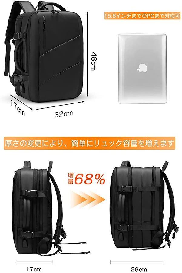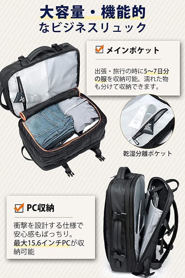 大容量ビジネスリュック15.6インチノートパソコン、A4サイズの書類や3~5日分の衣類などたっぷりと入る可能。