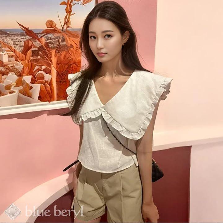 「甘さと洗練を兼ね備えたフリルカラーブラウス」 大胆に広がるフリルカラーが目を引くデザインは、フェミニンながらもモダンな印象を与える主役級の一枚。