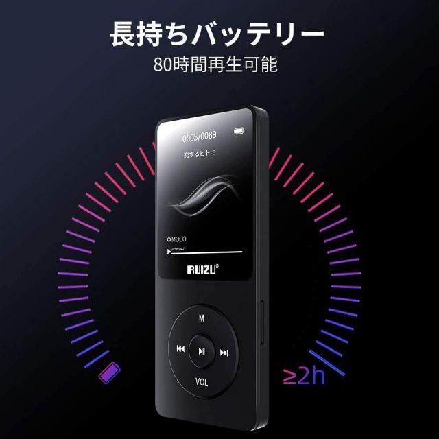 ・長時間バッテリー駆動可能なデジタルオーディオプレーヤーBluetooth対応MP3プレーヤー内蔵の充電式リチウムポリマー420mAhバッテリーにより、最大80時間の再生時間が可能です。USB経由での充電ができるため、充電器を持ち運ぶ必要もありません。イヤホンやUSBケーブルが付属しているため、すぐにお使いいただけます。ポータブルな音楽プレーヤーで素晴らしい音楽の旅を楽しめます