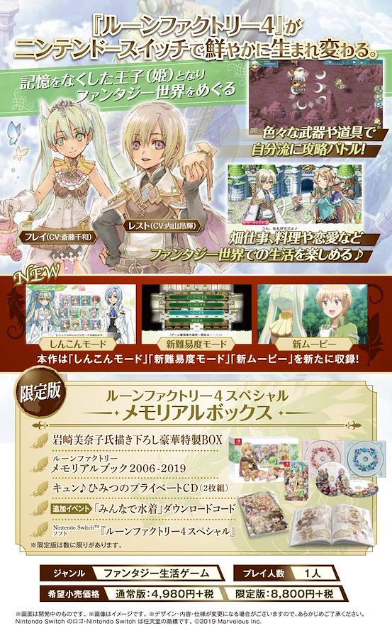 2012年にニンテンドー3DSで発売された『ルーンファクトリー4』がNintendo Switchで鮮やかに生まれ変わる。これまで発売された『ルーンファクトリー』シリーズはタイトルごとに物語が異なり、それぞれどの作品からでも気軽に楽しめます。その中でもシリーズ史上最もヒットした『ルーンファクトリー4』がNintendo Switchで登場。竜が住む城の王子(姫)となって冒険や日常生活のファンタジー生活を満喫しよう。