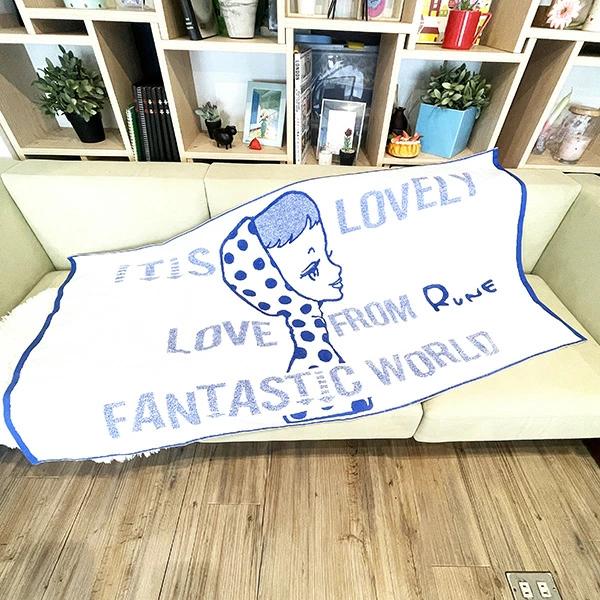 モードガールを描いたカワイイ文化の生みの親”内藤ルネ”の少女柄バスタオルです。タオルケットとしても◎