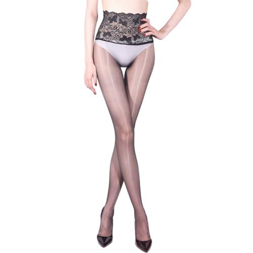 [RUNELISSE] セクシー 超薄 ストッキング パンスト レディース シームレス レースウエスト 光沢 美脚 タイツ フェティッシュ 透け感 ランジェリー インナー ハイウエスト エロ 可愛い コスプレ用 (60kgまで対応) ブラック