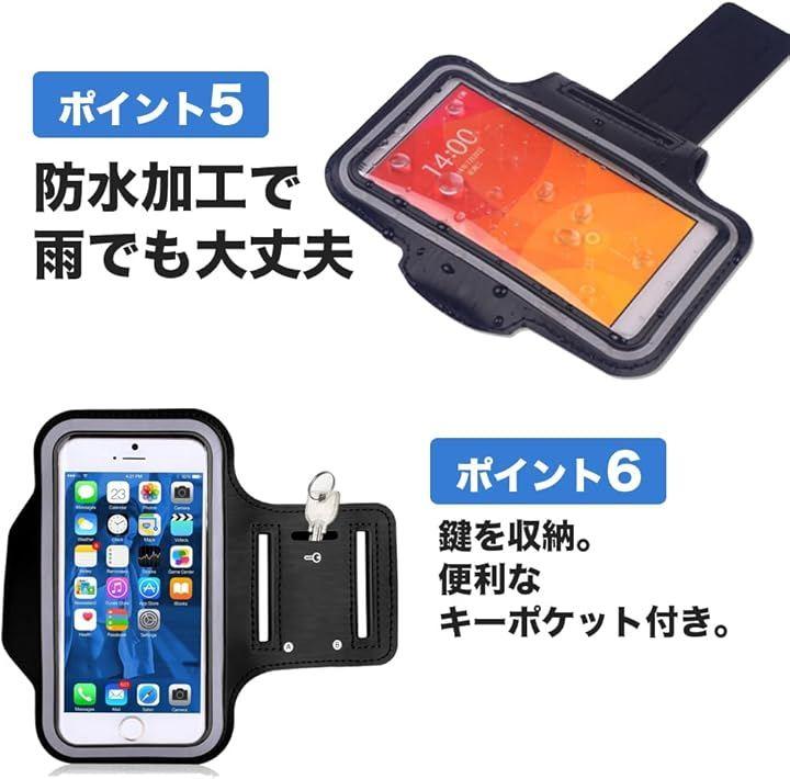 「防水加工で雨の日も安心」 防水仕様のアームバンドは、汗や雨に強く、天候に左右されずに使用できます。