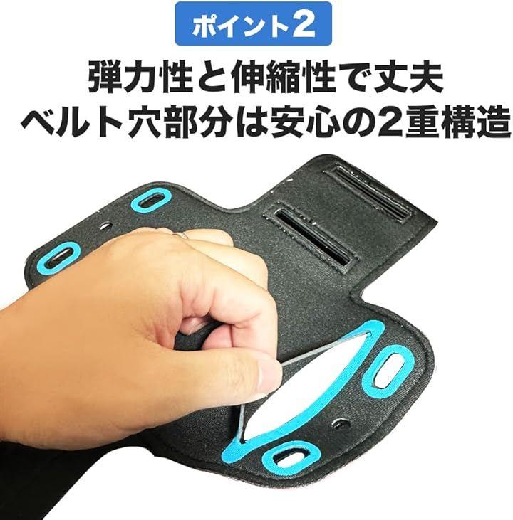 「弾力性と伸縮性で丈夫」 このアームバンドは、弾力性と伸縮性に優れた素材を使用しているため、耐久性が高く、激しい運動にも耐えられる丈夫さが特徴です。