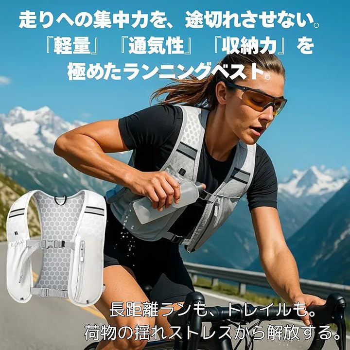 トレイルランニングや夏のマラソンなど、水分補給が重要なシーンで真価を発揮します。