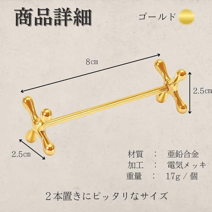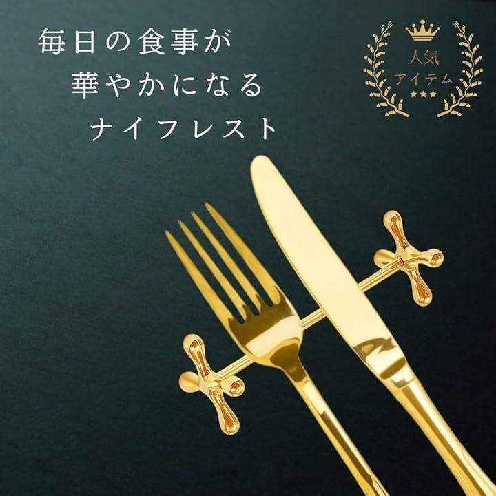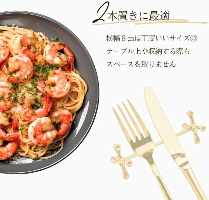 「商品仕様」 セット内容:ナイフレスト 2個 / 4個 / 10個セット サイズ:幅8cm x 奥行2.5cm x 高さ2.5cm 素材:亜鉛合金製(メッキ加工) お手入れ:手洗い推奨