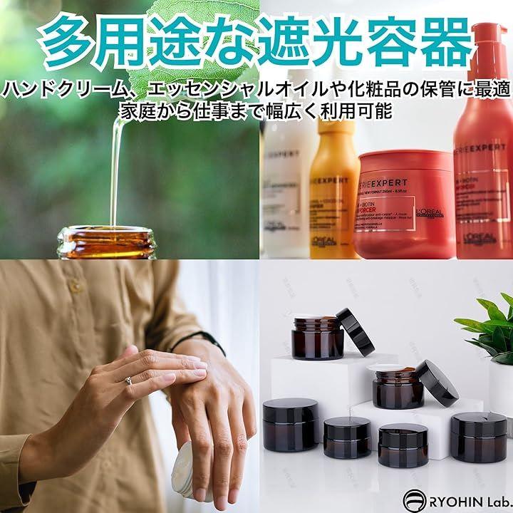 「多用途な遮光容器」ハンドクリーム、アロマクリーム、軟膏などの小分け保存に加えて、エッセンシャルオイルや化粧品の保管にも適しています。
