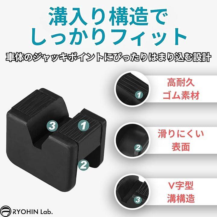 「傷つきやすい車体をやさしく保護」高耐久ラバーが金属との直接接触を防ぎ、ジャッキアップ時に車輌のジャッキアップポイントの塗装剥がれや凹みを抑えます。
