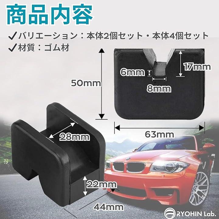 「商品内容」バリエーション:本体2個セット・本体4個セット、サイズ:長さ63mm・高さ 50mm・幅 44mm・溝の深さ 17mm 材質:ゴム材