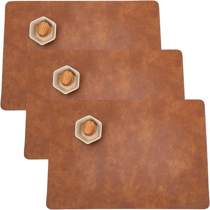 「商品内容」数量バリエーション:ランチョンマット2枚セット・ランチョンマット3枚セット、サイズ:約43cmx30cmx0.2cm、カラーバリエーション:7種類(ダークブラウン・ブルー・グレー・ブラック・ピンク・ライトブラウン・グリーン)、重量:145g/枚、素材:PUレザー、耐熱温度:上限100℃