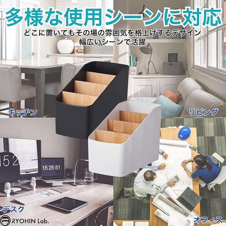 「調整可能な仕切りで自由な収納」4つの収納スペースを持つリモコンラックは、取り外し可能な仕切り板により、収納物に応じてスペースをカスタマイズできます。