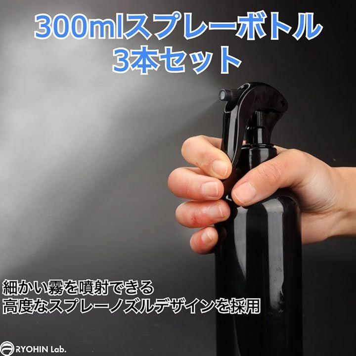 「商品内容」スプレーボトル3本セット、バリエーション:ブラックノズル・ホワイトノズル、容量:300ml、サイズ(約):高さ21.5cmxボトル直径3.5cm、素材:PET+PP、耐熱温度:-40~70℃