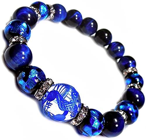 Ryukyu Firefly Blue Beads for Wealth and Health, Impressive 16mm Beads, Blue Carving, Five-Clawed Dragon Design, Quartz, Lapis Lazuli Tiger Eye, Men's Power Stone Bracelet, Natural Stone, Prayer Beads