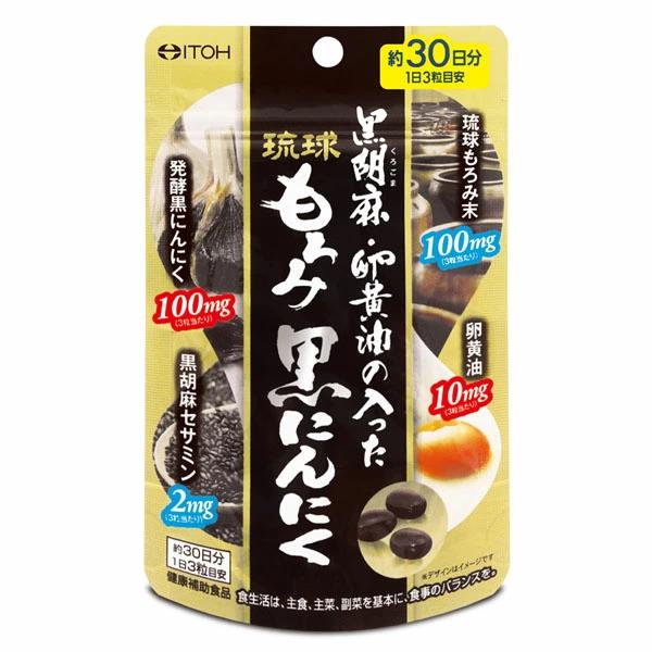 ●3粒あたり、発酵黒にんにく100mg・琉球もろみ末100mg・黒胡麻セサミン2mg・卵黄油10mg