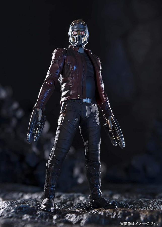 S.H.フィギュアーツ アベンジャーズ スター・ロード(アベンジャーズ/インフィニティ・ウォー)が登場。最新版の衣装で大人気キャラクター、スター・ロードが登場。交換用頭部が付属。専用武器が付属。【セット内容】本体、交換用手首左右各2種、交換用頭部、専用武器×2