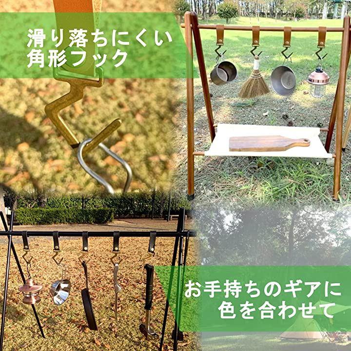 フックが角形タイプなのでお手持ちのギアが滑りにくく、風が吹いても外れる心配がありません。