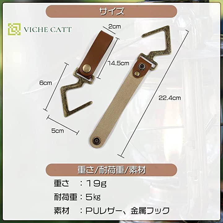 「サイズ」 全長:22.4cm 輪っかにした場合:14.5cm フック部分:縦6cmx横5cm 「重さ/耐荷重/素材」 重さ:19g 耐荷重:5kg 素材:PUレザー、金属フック