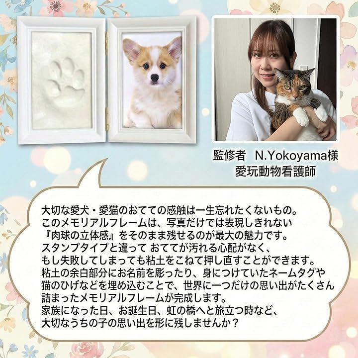 このメモリアルフォトフレームは、赤ちゃんの手形やペットの肉球を残せる記念アイテムです。