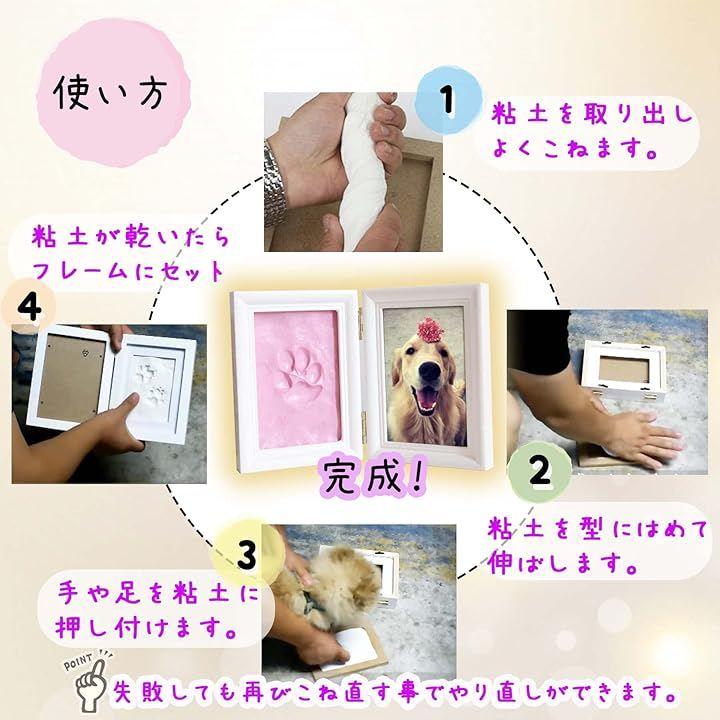 付属の粘土は軽くて柔らかく、初めてでも手形や足形、犬や猫の肉球などを簡単に型取りできます。