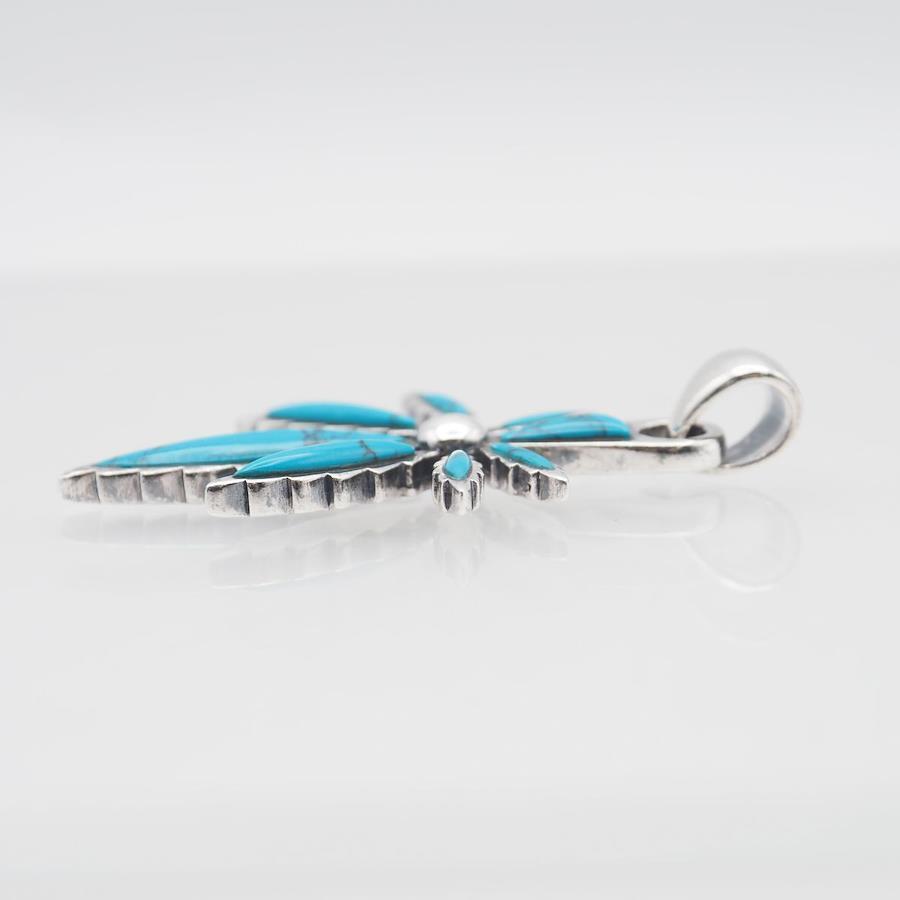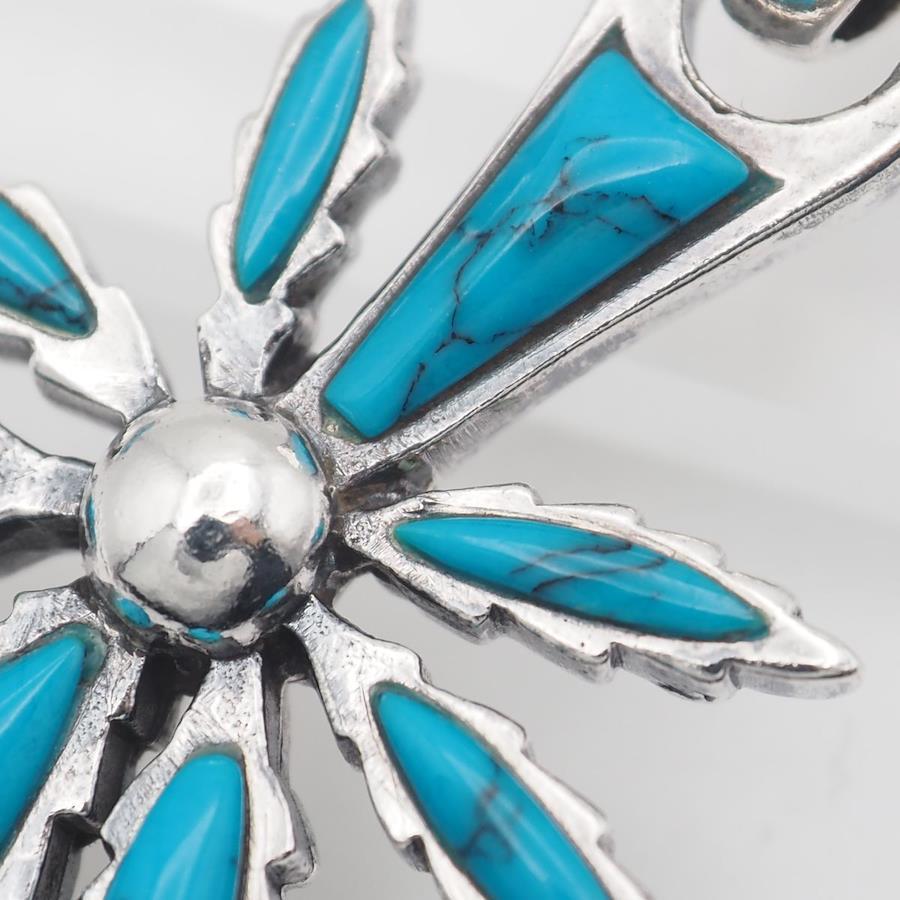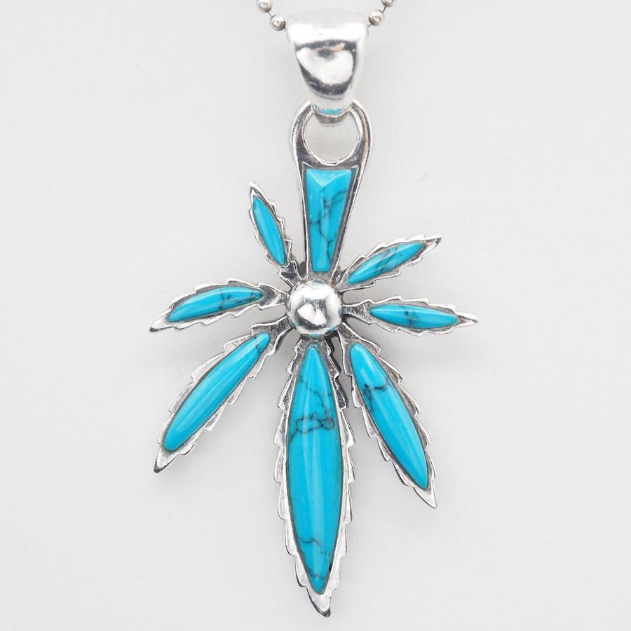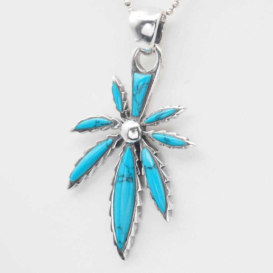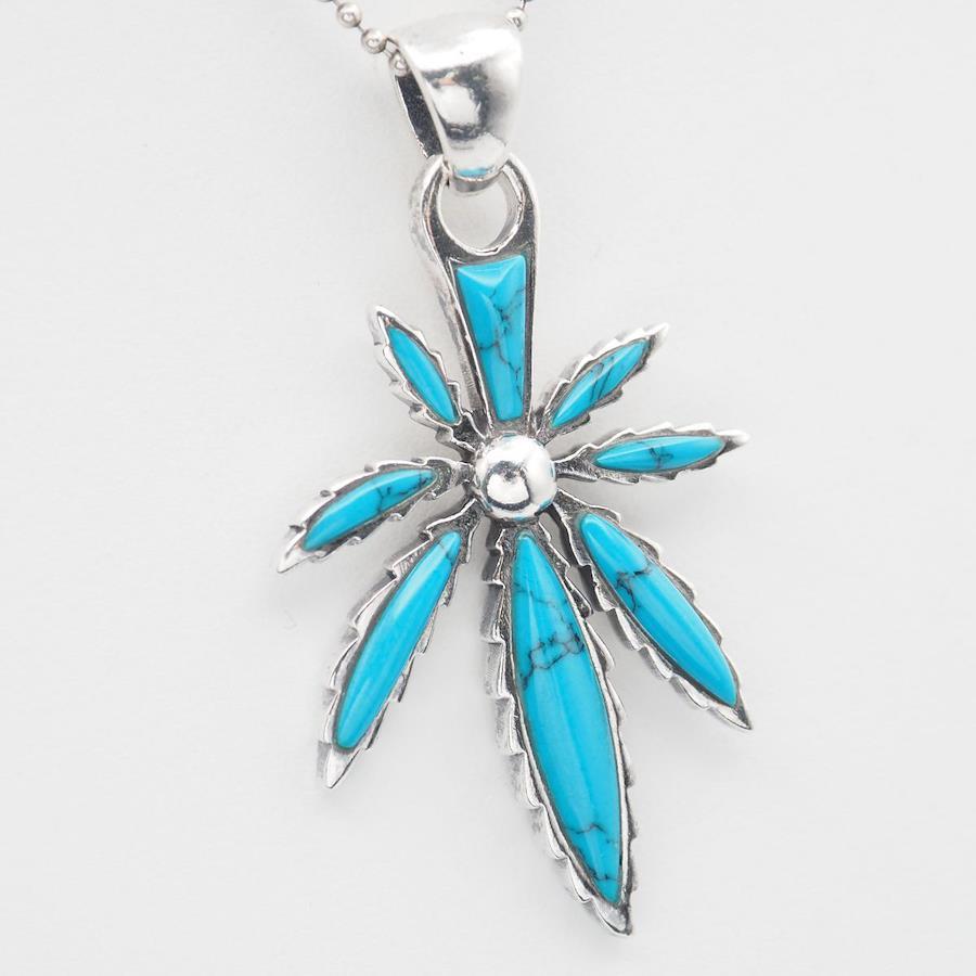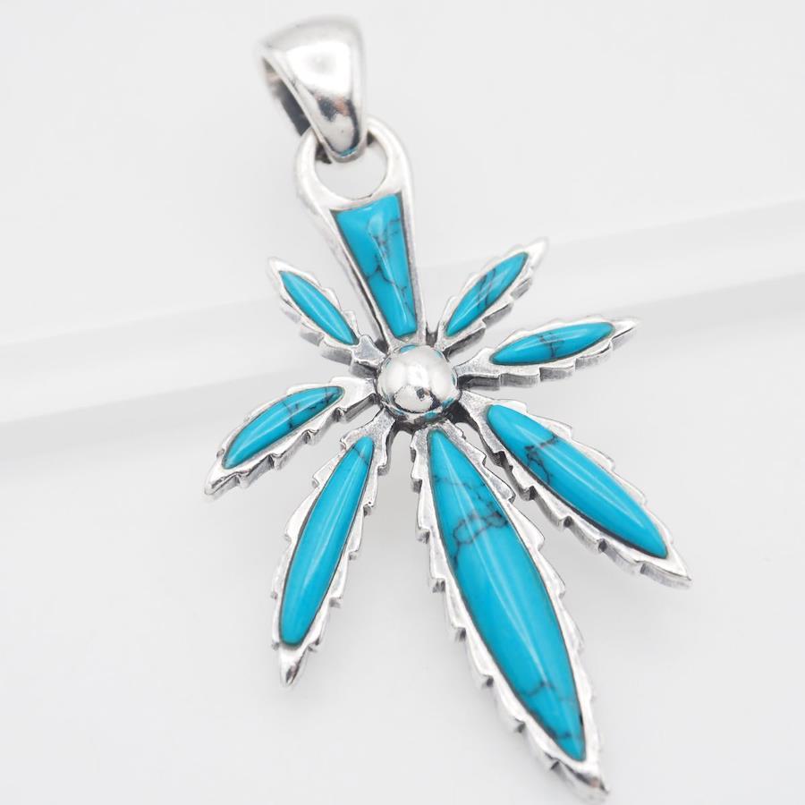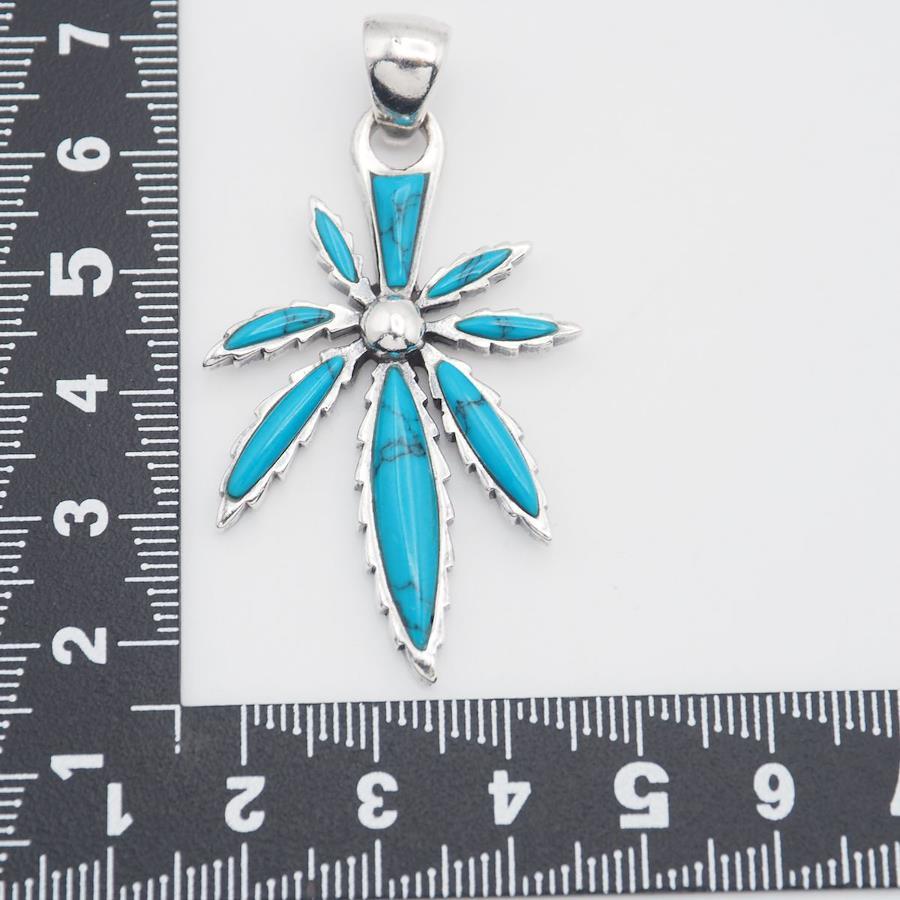 S107 Turquoise 925 Sterling Silver Pendant Top, Leaf Design Charm Head, December Birthstone