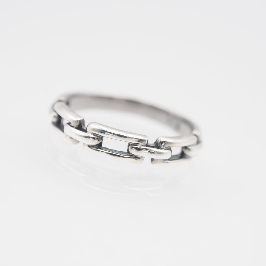 S176 Vintage 925 Sterling Silver Ring with Chain Design, Size 8-9
